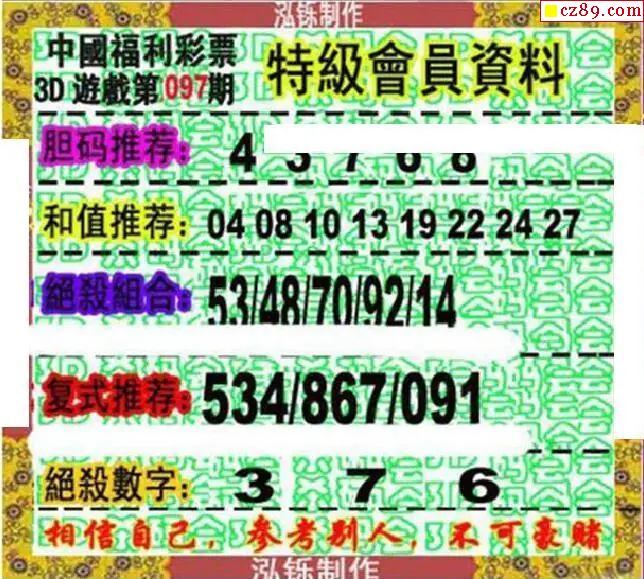 鸿铄图2026097期3d图谜